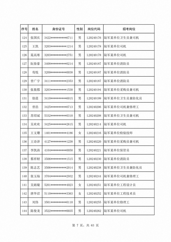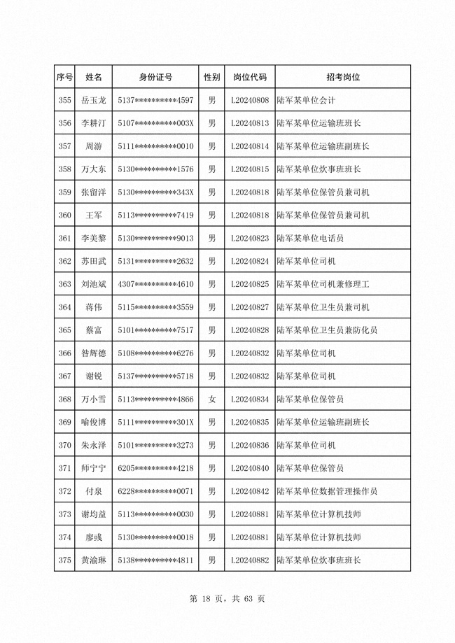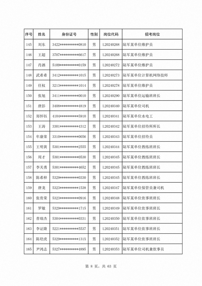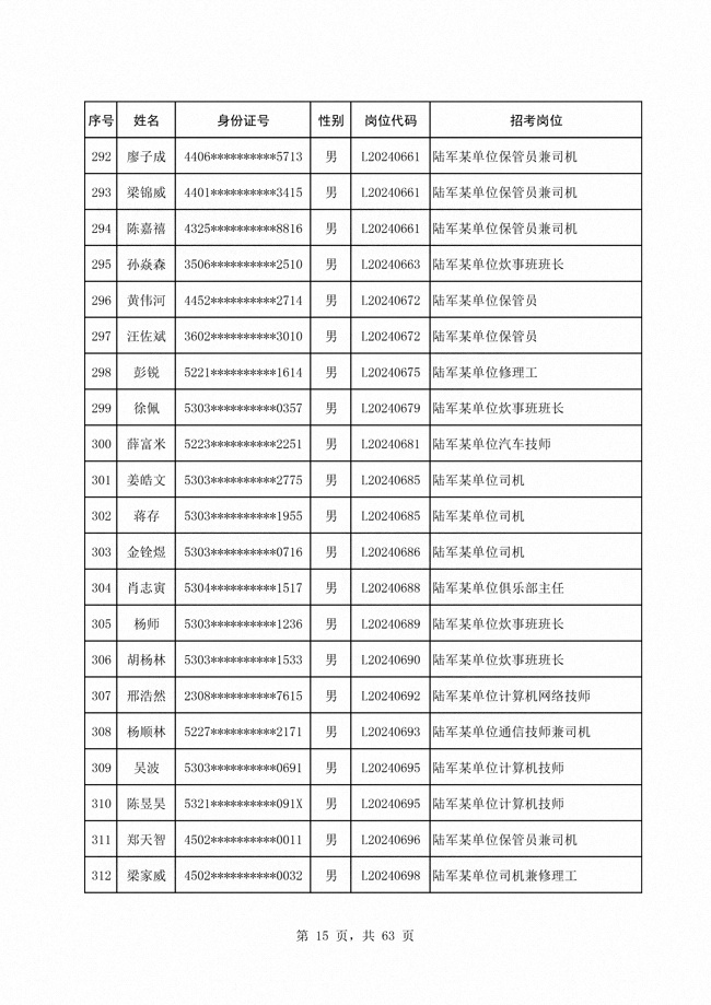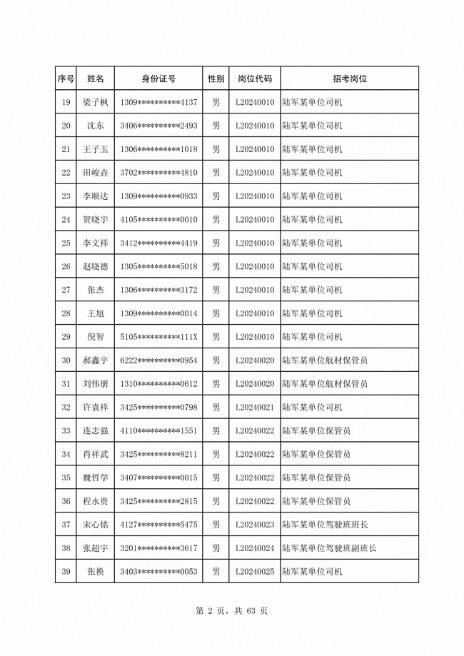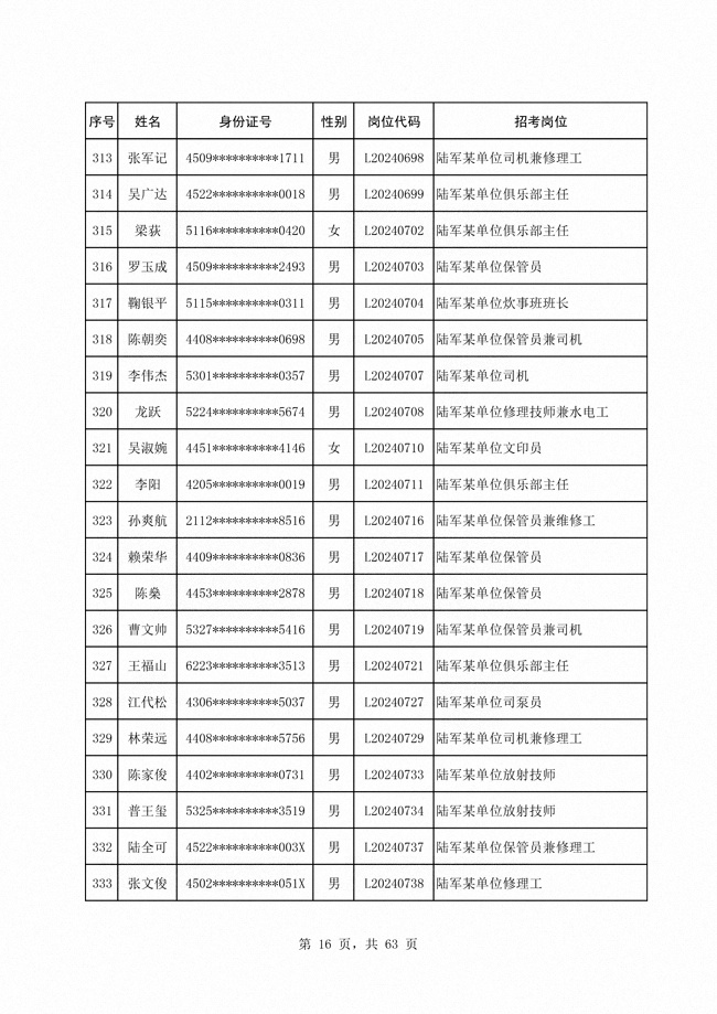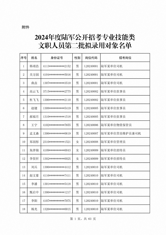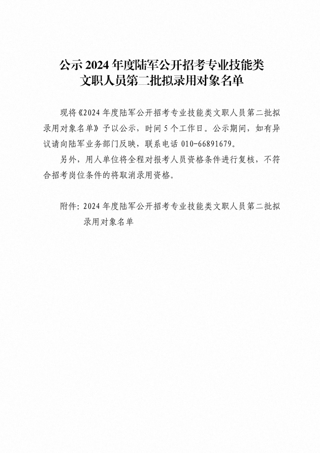 2024年陆军公开招考专业技能类 文职人员第二批拟录用对象1316人
