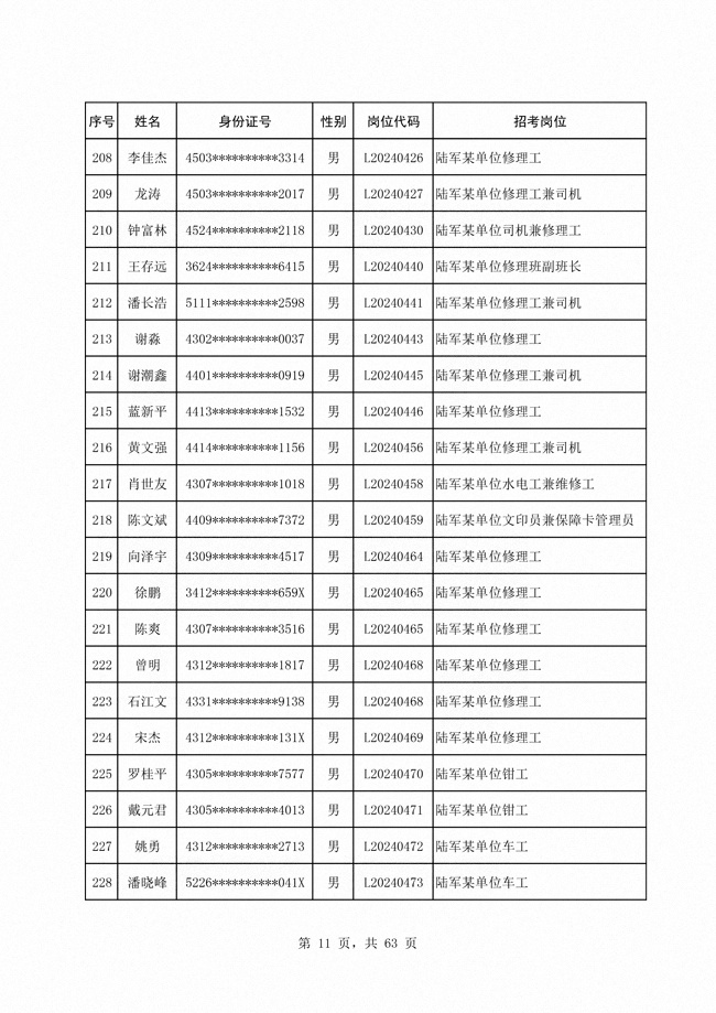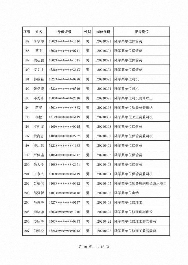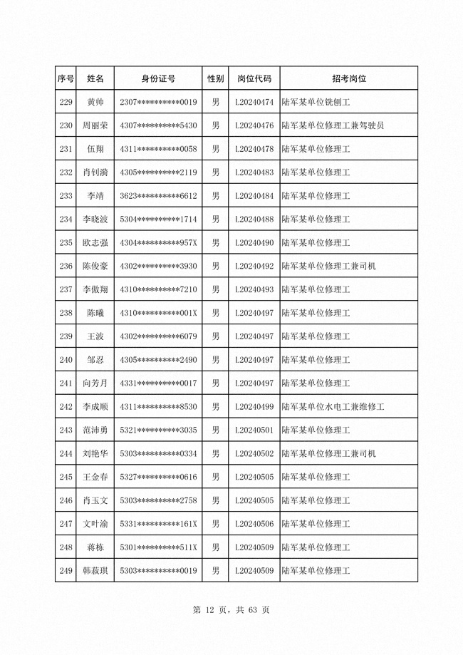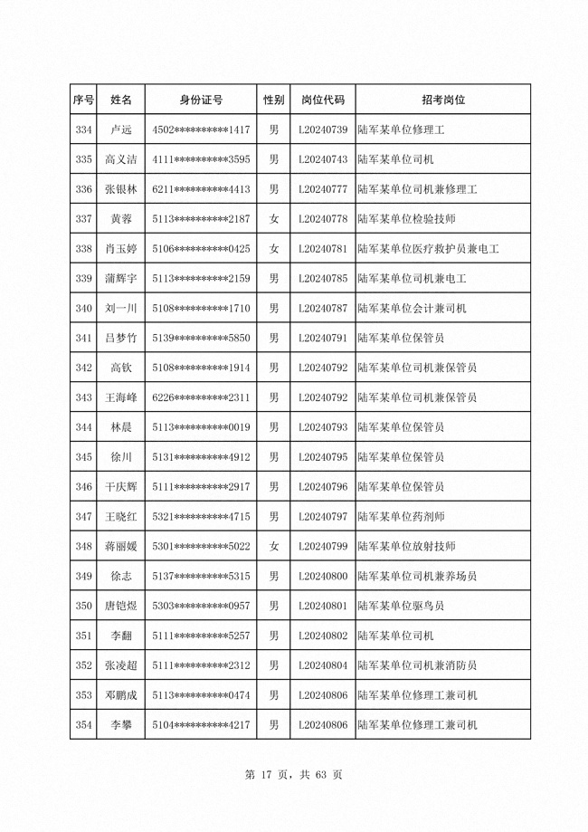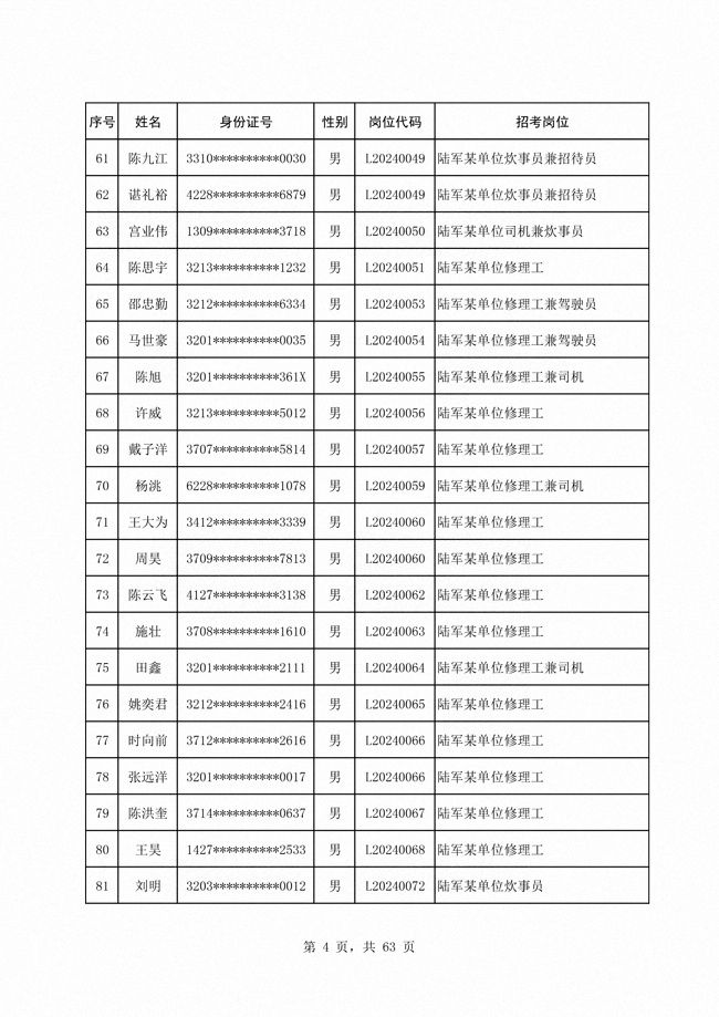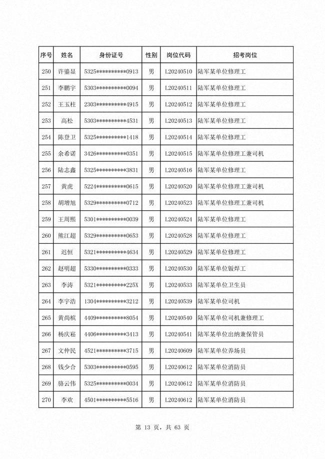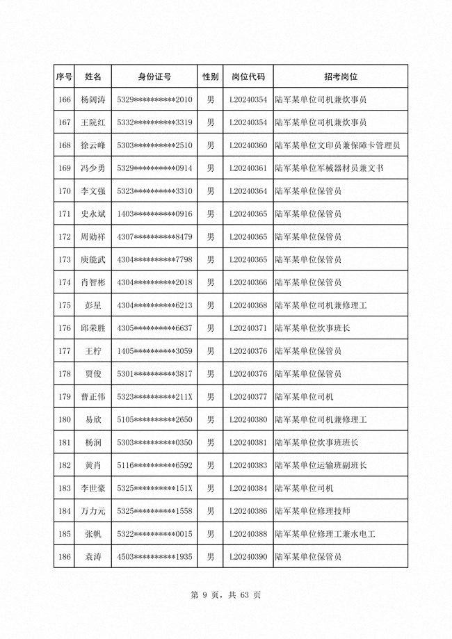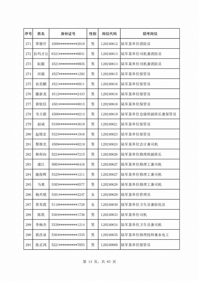 2024年陆军公开招考专业技能类 文职人员第二批拟录用对象1316人